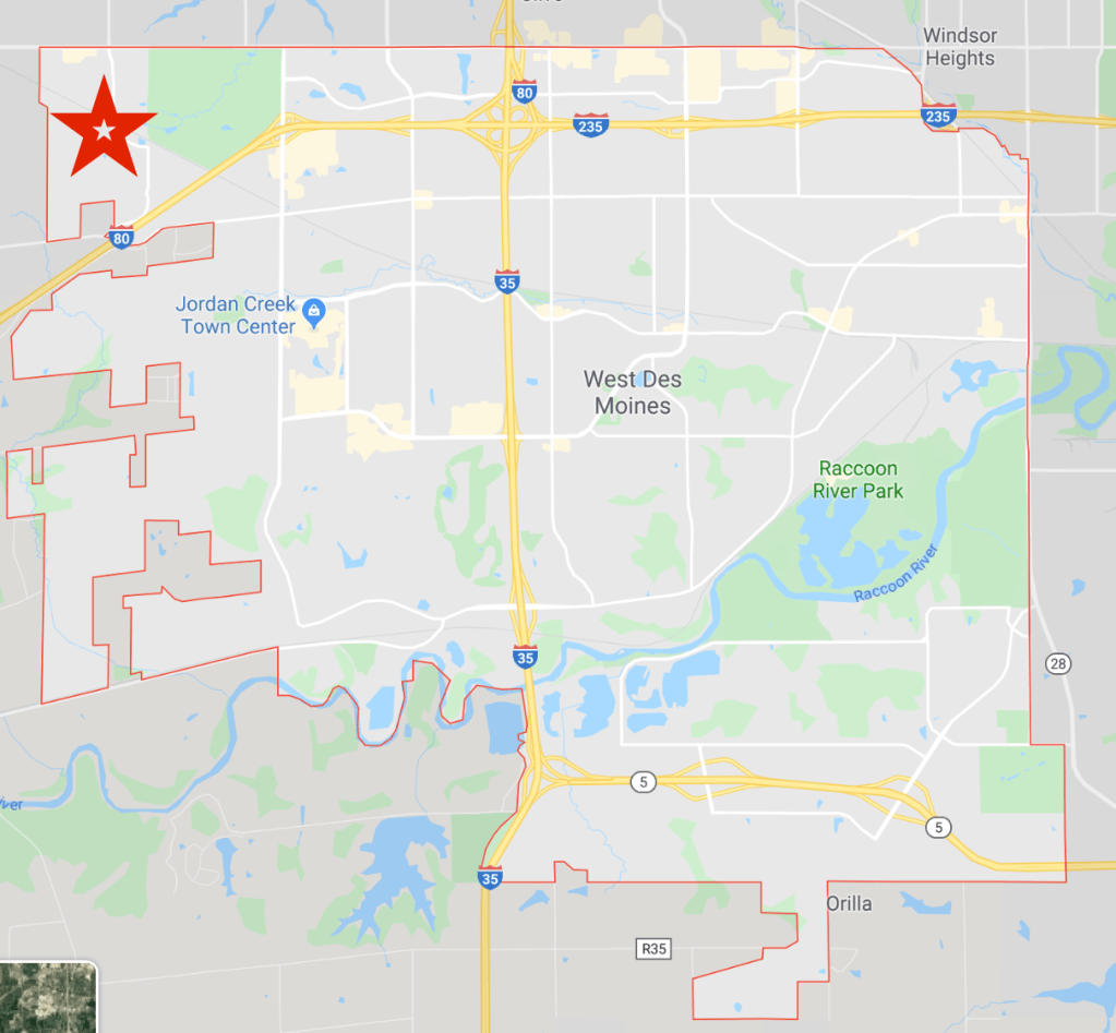 Maple Grove West (Plats 1 & 2) rests in the northwest corner of the city of West Des Moines, Iowa. The Homeowner’s Association consists of 101 units between the two plats. (Plats 3, 4, and 5 are covered under separate HOAs). All units fall within the Waukee Community School District boundaries.